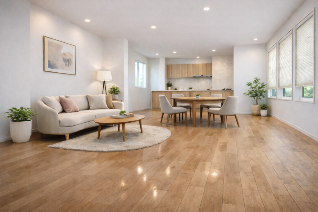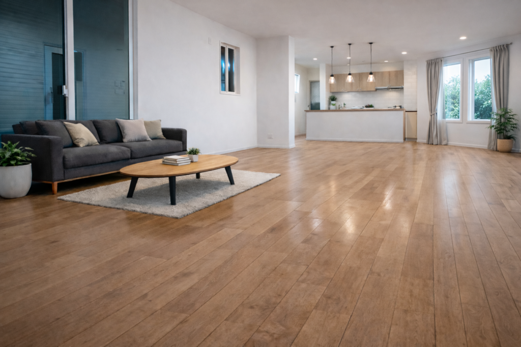 強い撥水性が内部への汚れの浸透を防ぎ、保護効果は20年以上持ちます。UVコーティングに比べ、薬品の浸透による変色の発生は少なく水拭き程度の簡単なお掃除で済みます。薬品やアンモニア(ペットの尿等)にも強いのが特徴となります。また、UVコーティングに比べ安価に施工出来る為、非常にコストパフォーマンスに優れたコーティングになります。